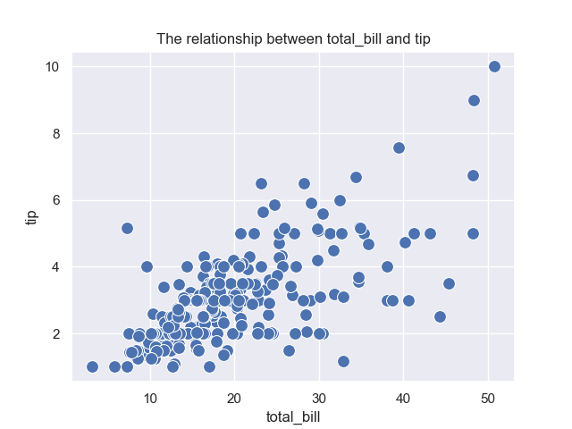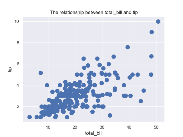 # s指定散点的面积,data指定数据来源,ax指定散点图绘制的子图位置axes.set_title('The relationship between total_bill and tip')