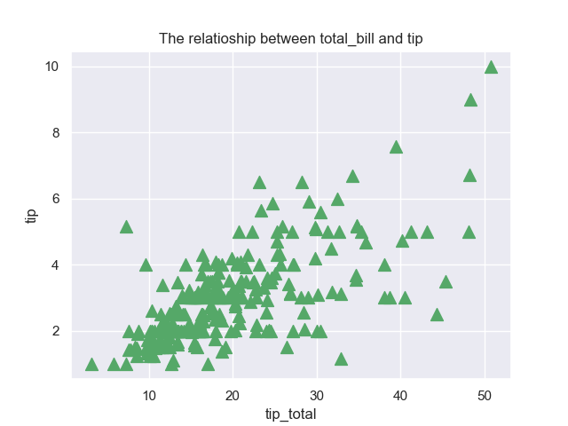 # marker指定散点的形状,ax指定散点图绘制的子图位置axes.set_title('The relationship between total_bill and tip')