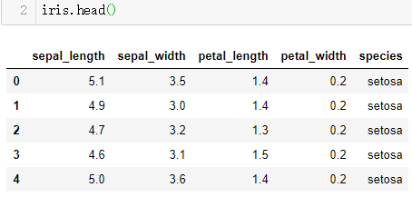 首先加载seaborn.pairplot()用到的数据iris,并查看iris的表结构: