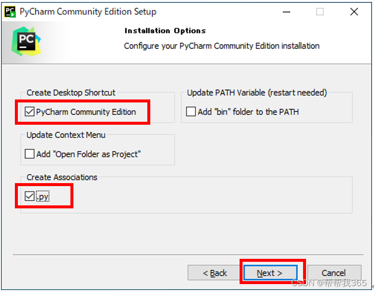 5.选择【PyCharm Community Edition】,【.py】进行下一步【Next】