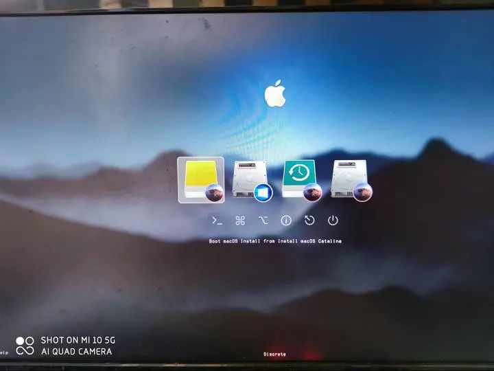 速度仍然取决于你的 U 盘速度。这一阶段安装完成后重启,然后 Clover 界面选择你的硬盘,这个时候应该能识别出来,后面会有硬盘名。
