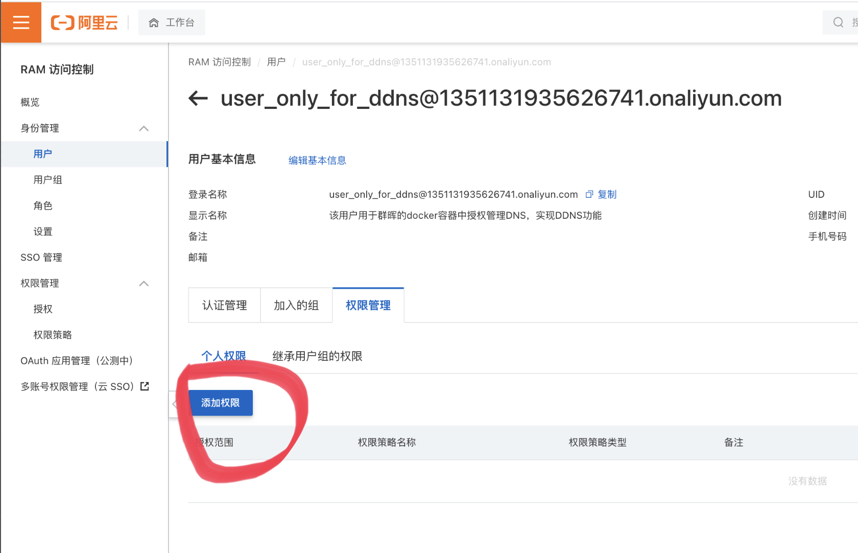单击添加权限