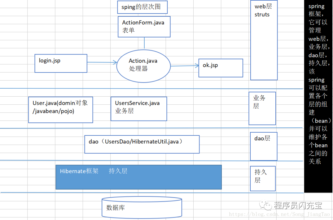 说明:web层: struts充当web层,接管jsp,action,表单,主要体现出mvc的数据输入,数据的处理,数据的显示分离。