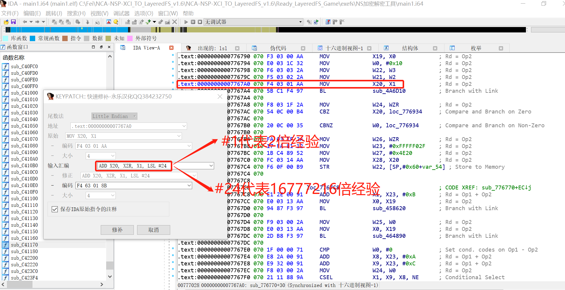 好了,本节到此结束,在本节中,我们学会了怎么制作经验值翻倍,人物满级,堆类型材料数量锁定,以及储藏箱容量上限提升的功能,分析和hack程序的功力又上了一层楼,下一节将会讲解关于传奇宝石相关的一系列金手指制作,相信读者会体验到终极逆向和hack技术的魅力!