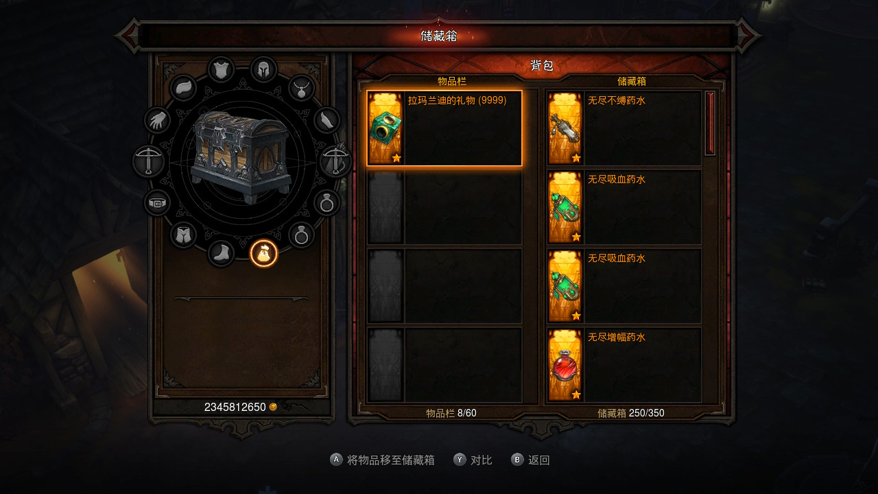 10. 进入游戏测试金手指,去储藏箱看看,是不是可以突破350的仓位上限啦!