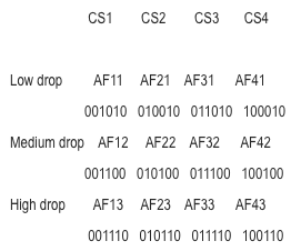 下表列出了AF服务等级及其对应的DSCP值: