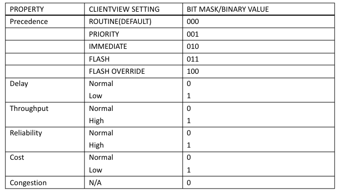 4bit的TOS分别代表:最小时延、最大吞吐量、最高可靠性和最小费用。4bit中最多只能置其中1bit。如果所有4bit均为0,那么就意味着是一般服务。