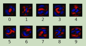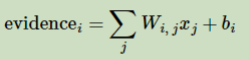 为了得到一张给定图片属于某个特定数字类的证据【evidence】,对图片像素进行加权求和。如果这个像素具有很强的证据说明这张图片不属于该类,那么相应的权值为负值相反如果这个像素拥有有利的证据支持这张图片属于这个类,那么权值即为正数。