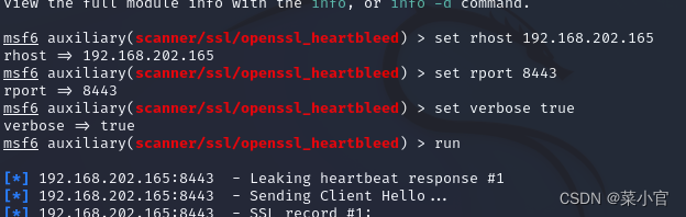 两个辅助模块,选择1测试(set verbose true 是为了看到泄露的信息):