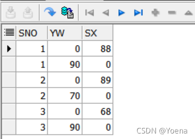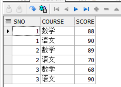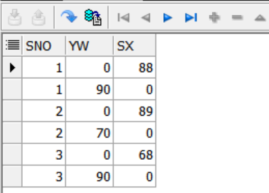 写法2:行转列,列出 学号,语文成绩,数学成绩 ,然后再比较;