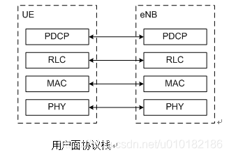 用户面PDCP、RLC、MAC在网络侧均终止于eNB,主要实现头压缩、加密、调度、ARQ和HARQ功能。
