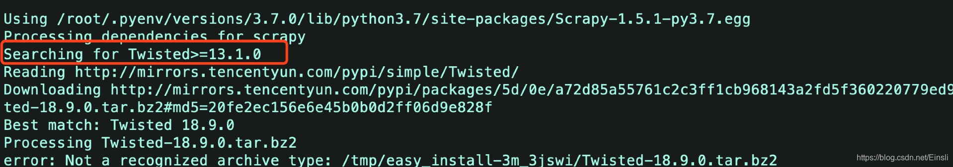 上图中会出现一个 Best match: Twisted 18.9.0,这就是你要下的版本号,其他的也可以,但是这个最适合
