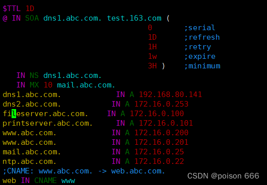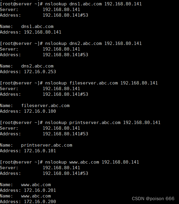 7.测试: nslookup dns1.abc.com 192.168.80.141
