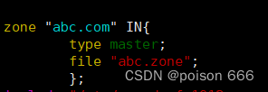 file "abc.zone"; #指定区域解析文件为abc.zone