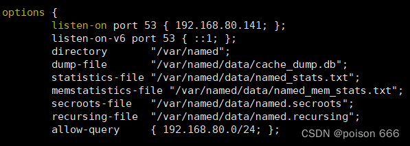 1.编辑/etc/named.conf文件:vim /etc/named.conf