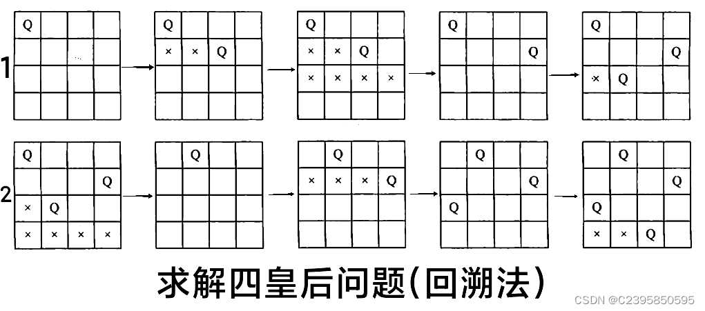 n 皇后问题,研究的是如何将 n 个皇后放置在 n×n 的棋盘上,并且使皇后彼此之间不能相互攻击。 一个皇后可以向水平、垂直以及向斜对角方向移动,如果一个皇后出现在另一个皇后的同一行,同一列或者斜对角,那它就可以被这个皇后攻击。可以通过列举出在棋盘上所有的情况,然后判断每个组合是不是符合的条件。