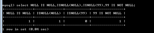 这两个运算符是用来检验值是否为NULL,如果为NULL,返回值为1,否则返回值为0
