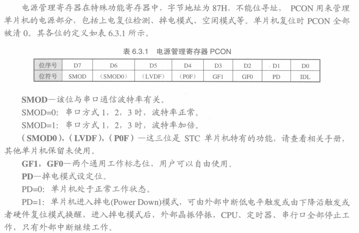 电源控制寄存器PCON中只有一位SMOD与串行口工作有关,
