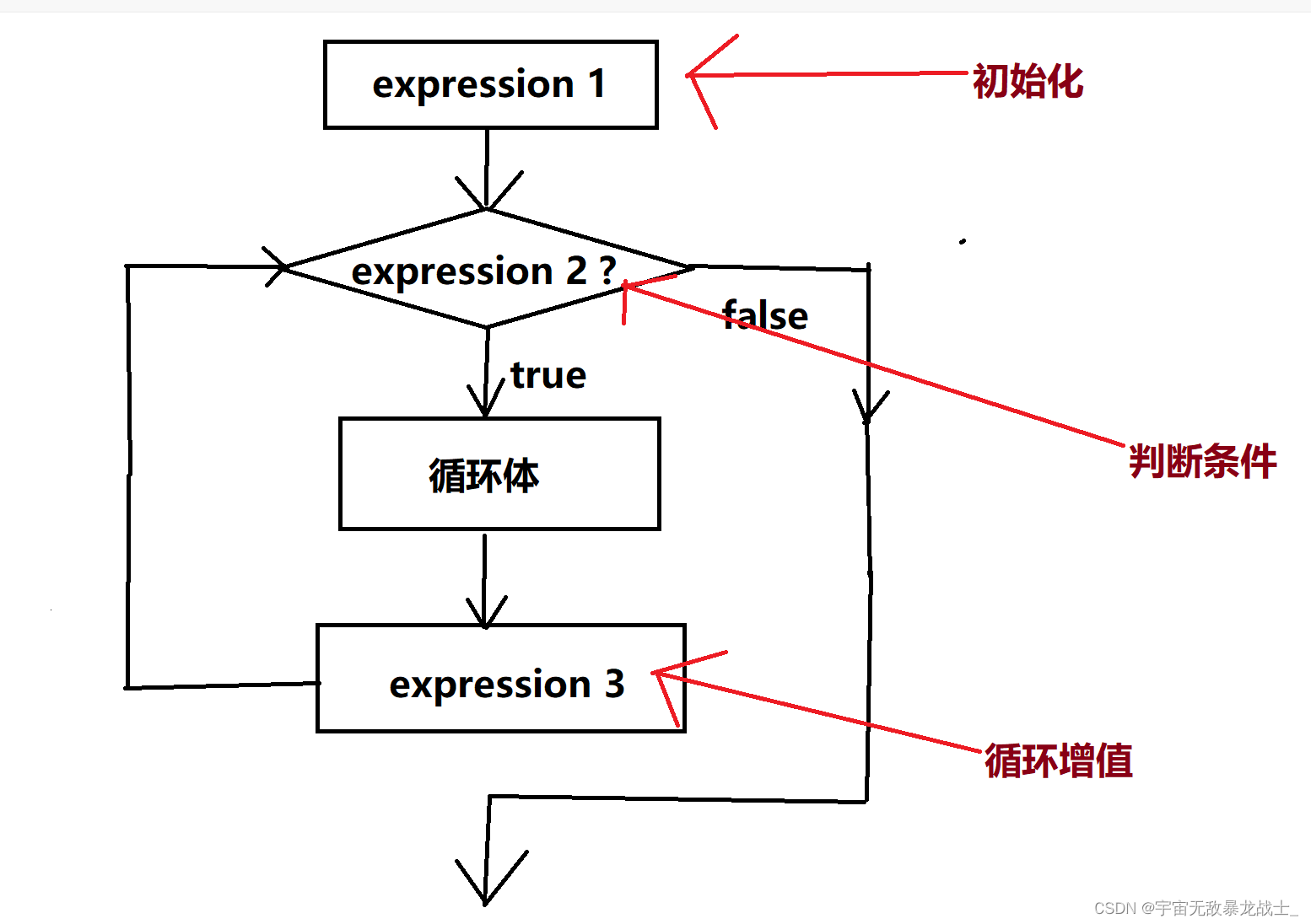 如图:expression是循环条件,当条件为真进入循环,否则跳出循环。break也可以跳出循环后期会讲。