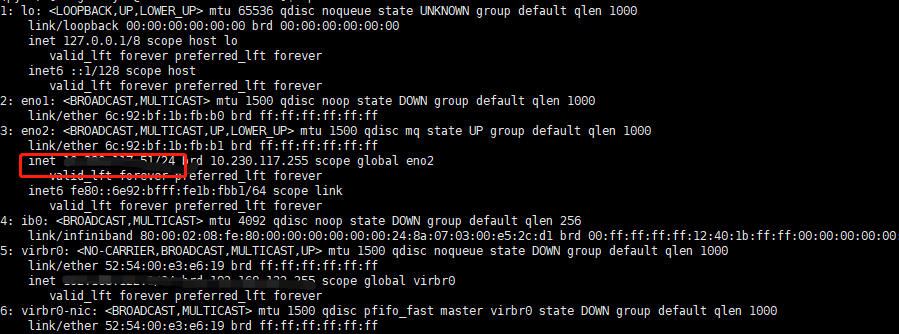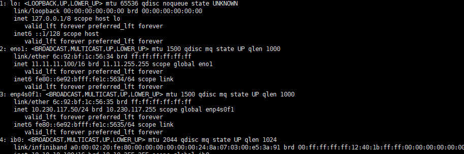 查看服务器网关:这是服务器上有多个子服务器的网关显示,default是默认的网关地址,后面的dev是网口,其余的网关就是子服务器的网关,这应该是一个集群的信息。