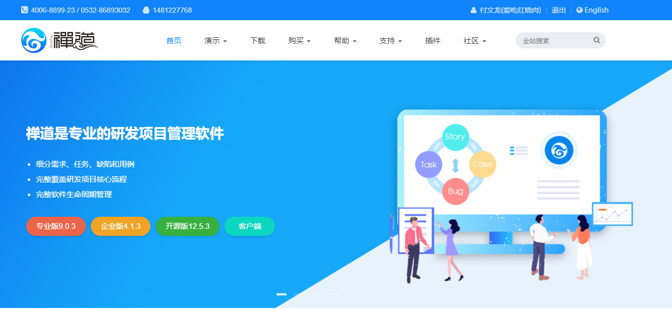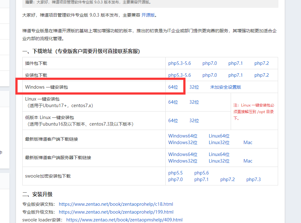 1.进入禅道官网:http://www.zentao.net/,选择要安装的版本,我选的是开源版,因为不用付费。
