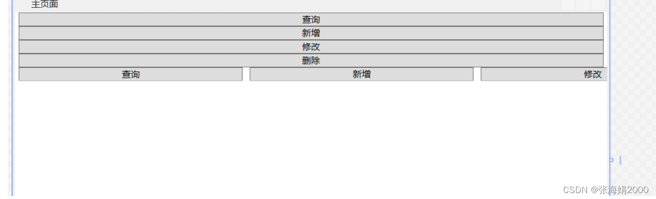 <!--<StackPanel>:栈式面板,在默认情况下它是垂直排布的StackPanel Orientation="":Orientation决定它是水平排布的还是垂直排布的Orientation="Horizontal":垂直排布Orientation="Vertical":水平排布--><StackPanel ><!--竖排(Vertical默认的):在默认情况下每个元素各占一行--><Button>查询</Button><Button>新增</Button><Button>修改</Button><Button>删除</Button>