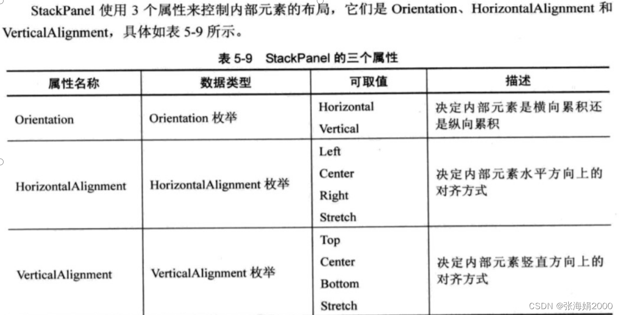 StackPanel堆叠容器。子控件每个都占一行或一列。Orientation属性设置横向Horizontal