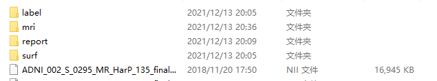 其中mri文件夹里剩下四种命名的.nii文件——mwp1xxx.nii(标准化灰质体积图像)、mwp2xxx.nii(标准化白质体积图像)、p0xxx.nii(原始图像)、wmxxx.nii(剥脑&标准化T1图,盲猜是模板图得出来的,与输入无关,没贴图)