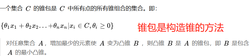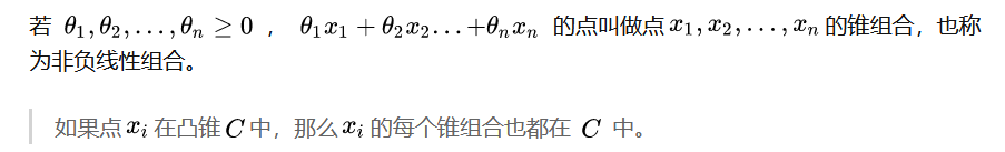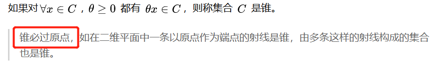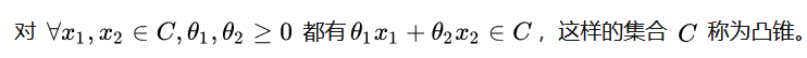 即集合C如果既是凸集也是锥,那么这样的集合就叫凸锥,凸锥也一定包含原点。