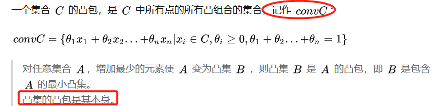 ②凸集的概念:一个集合是凸集当且仅当该集合中任意两点的连线上的所有点(即线段)仍然属于该集合。