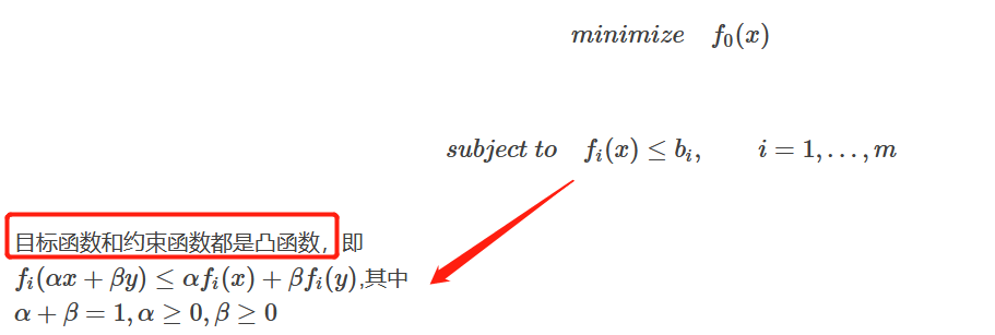 在最小化(最大化)的优化要求下,目标函数是凸函数且约束条件所形成的可行域集合是一个凸集的优化方法,因此凸优化的判定条件有两个