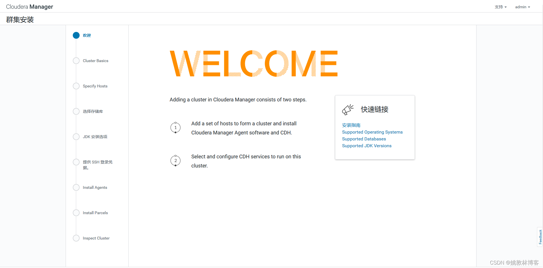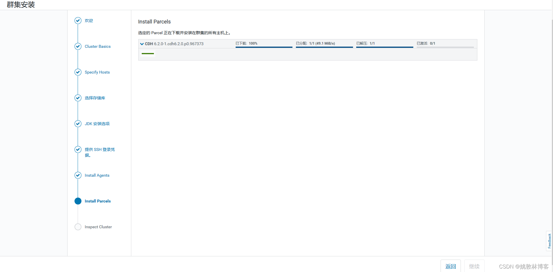 - 创建cdh集群。使用parcels的方式安装cdh集群,需要下载将近两个G的parcels文件并部署到每一台主机上。