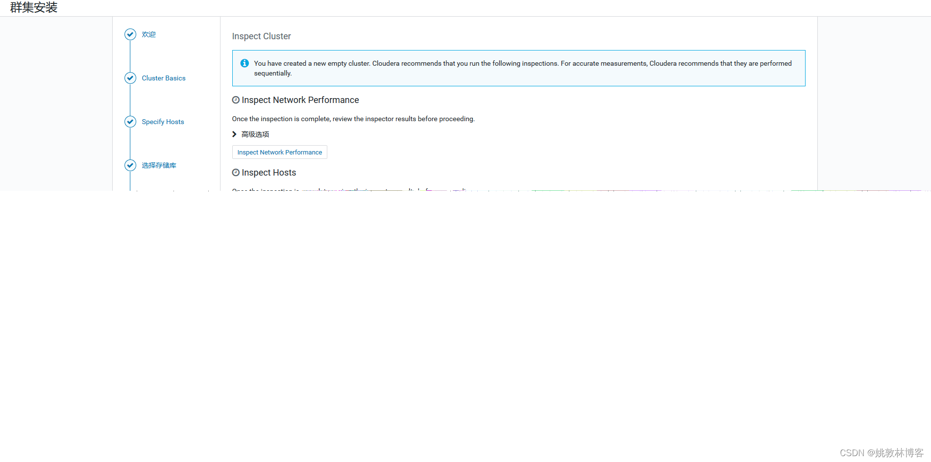上面的图是一个向导,它会引导你创建一个集群。上面的图有两个选项卡,分别是new hosts和currently managed hosts。选择new hosts选项卡的话,将会引导你在新的主机上安装cloudera-manager-agent,由于我们之前已经安装过cloudera-manager-agent了,所以我们其余的主机已经是managed-hosts了,所以选中currently managed hosts选项卡下的所有主机,并点击下一步,然后你会看见这个界面