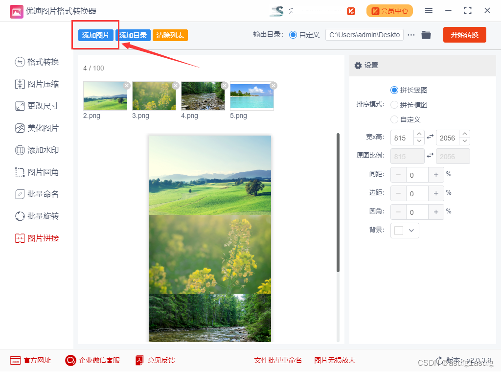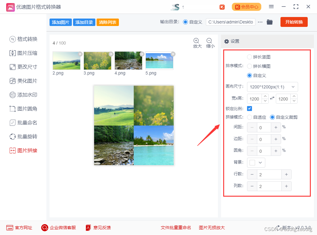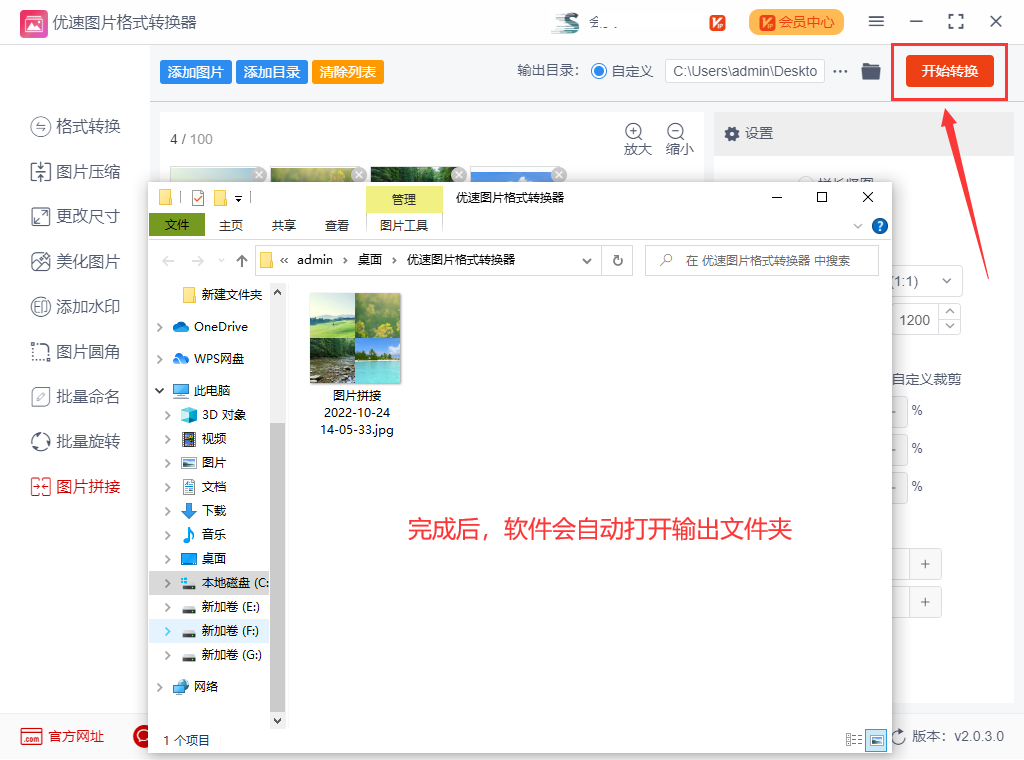步骤四:参数设置完成后,就可以点击【开始转换】按钮进行整合图片了,很快软件就会按照我们的设置要求完成拼接整合,这时软件会把保存了整合好的文件夹自动打开,方便用户查看文件。