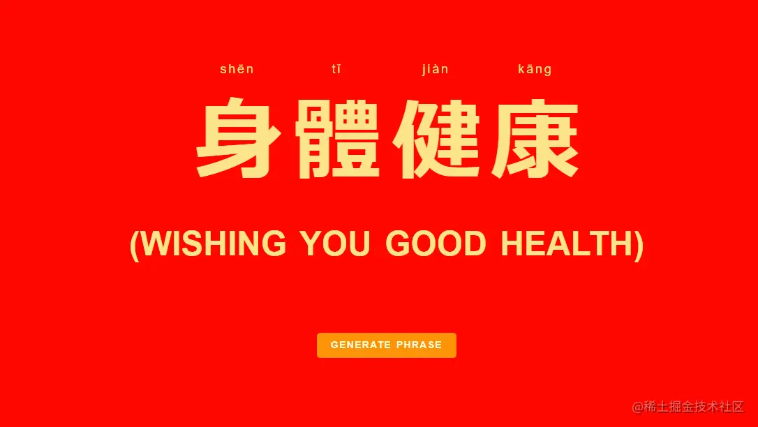 2022新春将至,只需要点击按钮即在线自动生成新年快乐、大吉大利、恭喜发财、万事如意、心想事成等等四字短语。相当方便又炫酷!