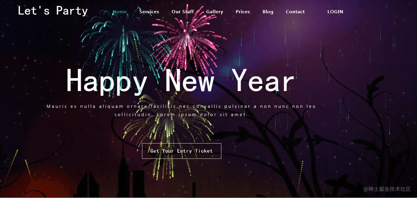 响应式新年html网页设计模板,可适用于新年主题网页、新年活动、新年party、新年倒计时等,烟花动画失分绚丽,特别漂亮。这里因为动图上传大小限制只能上传5M、所以没有录制完。