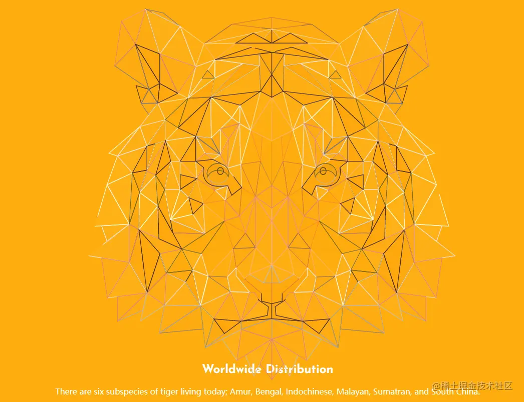 2022就是虎年了,收集了一款关于老虎的网页动画,线条逐渐衍生形成整幅老虎图像,效果惊艳,栩栩如生。网页还包含关于老虎的一小部分知识。