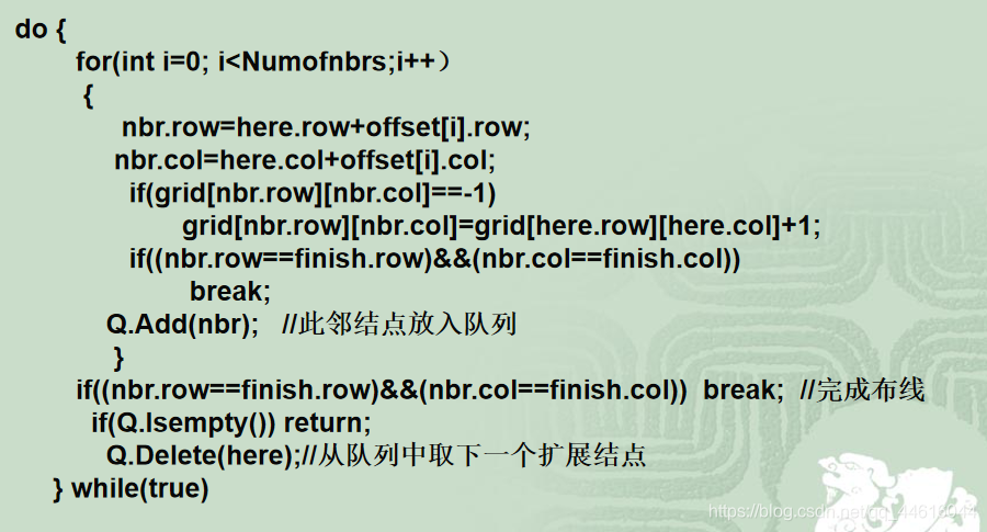 - 重复上述扩展过程,直到找到问题的解或队列为空时为止。