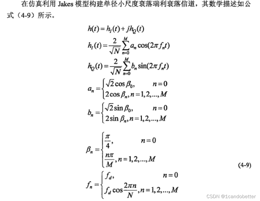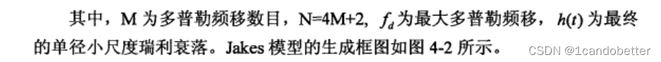 当多径效应的径数足够多时,瑞利衰落可以用接收信号的包络来进行模拟。在仿真时利用jakes模型构建单径小尺度衰落瑞利信道.
