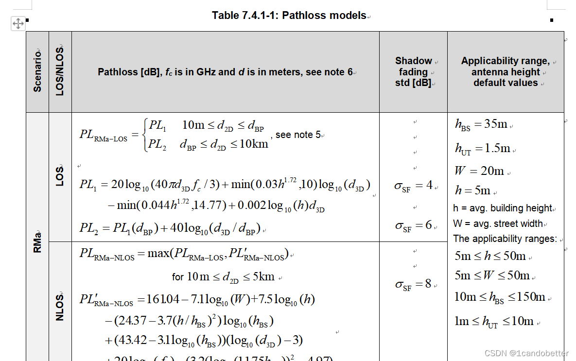 四种应用场景下分别定义了视距(LOS)和非视距(NLOS)模式。在每种场景中定义每个收发天线对之间的传播链路为一个路径,而每种场景的路径数不同。每条路径有不同的时延、入射角和出射角等小尺度参数,同时每条路径又被分为20条子径,并有不同的功率值,这些小尺度参数值都服从各自的概率密度分布函数。