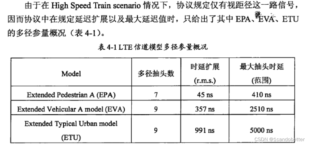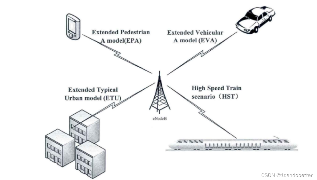 TD-LTE系统中主要的四种信道模型:扩展步行模型(Extended Pedestrian A model,EPA)、扩展车速模型(ExtendedVehicular A model,EVA)、扩展城市模型(Extended Typical Urbanmodel,ETU)以及高速铁路模型(High Speed Train scenario,HST)。
