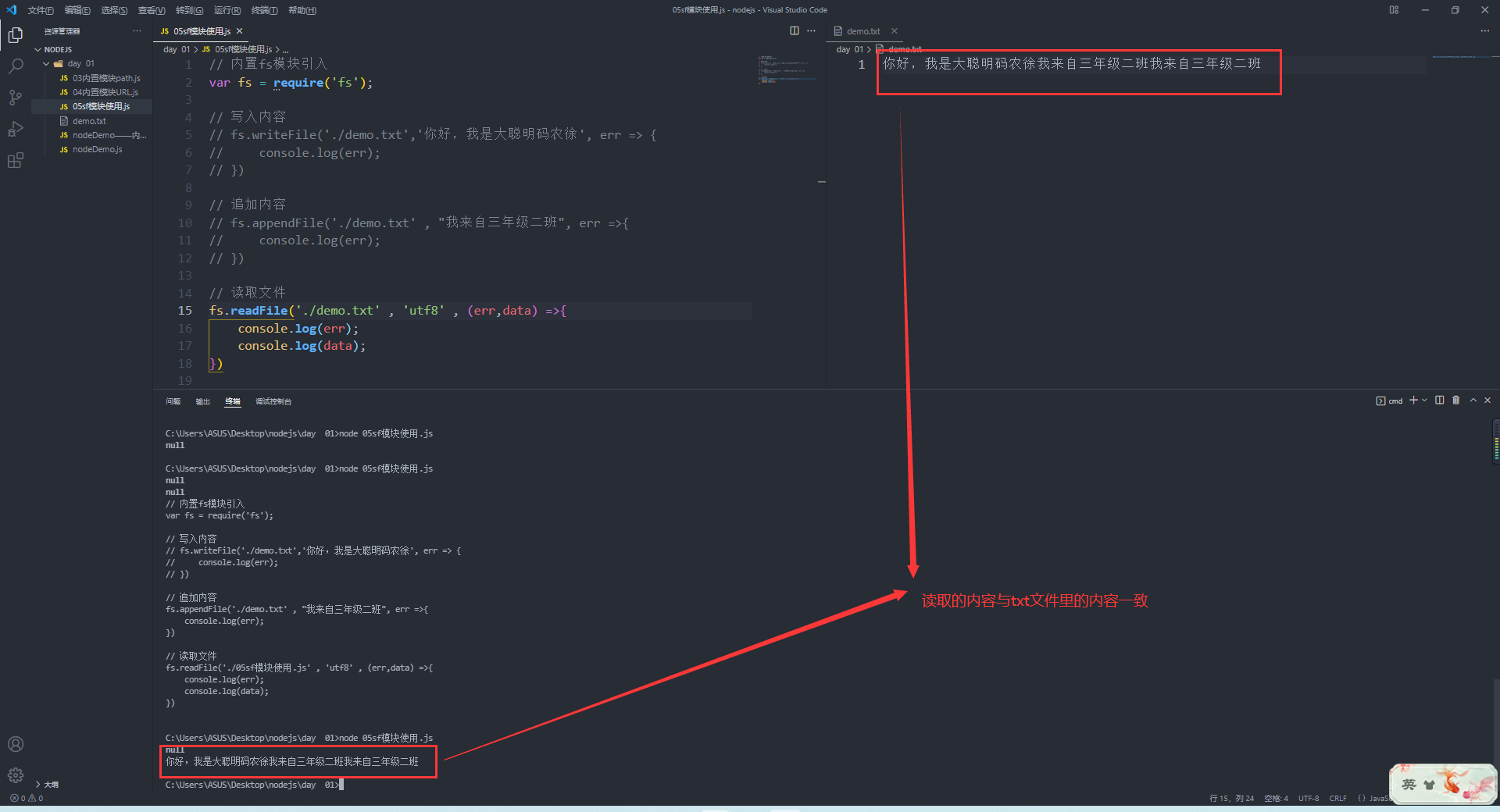 var fs = require('fs'); //fs模块引入