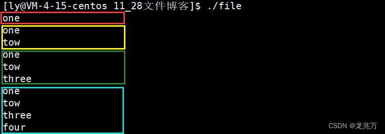 读者自行将上面的代码copy走,将主函数的msg字符串的'\n'删除掉或保留,在Linux终端下观察文件的数据情况。