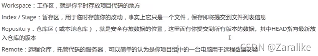 Git本地有3个工作区域:工作目录(Working Directory),暂存区(Stage/Index),资源库(Repository或GIt Directory),还有一个远程的git仓库(Remote Directory)