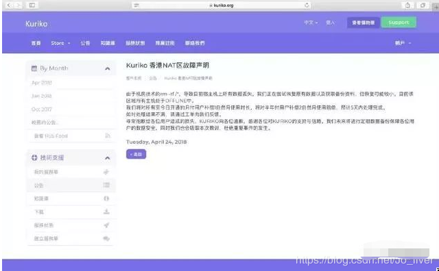 Kuriko2018年 4 月 24 日在其官网刊登香港 NAT 区故障声明,内容如下: