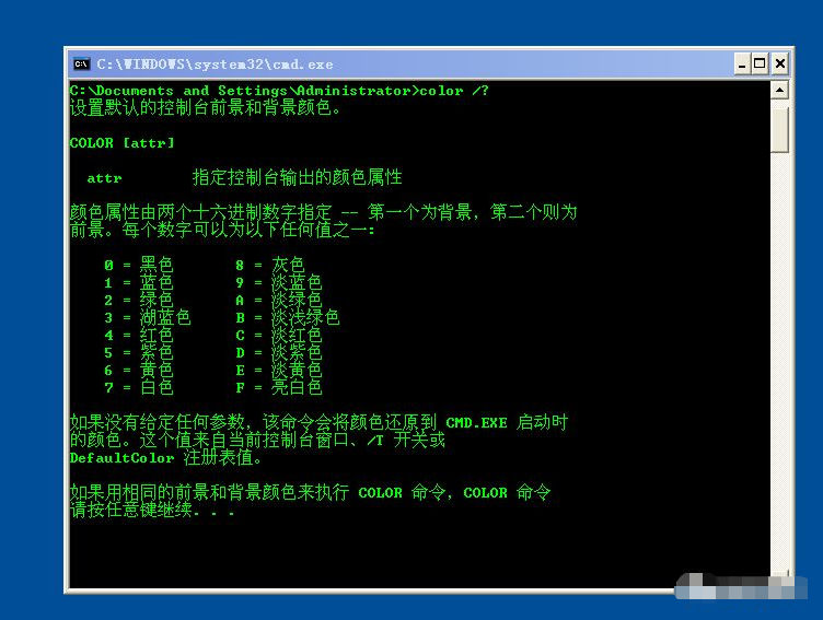 当然,用指令改颜色,下次启动还是默认的颜色!