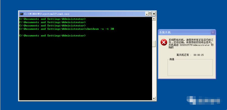 定时关机命令符:shutdown -s -t 30 (s就是关机命令,t 30是关机时间 中间有空格)