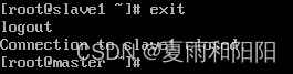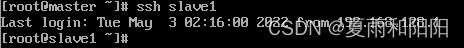 [root@master ~]# ssh slave1 //下图表示无密码登陆slave1成功