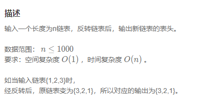 public ListNode ReverseList(ListNode head) {if (head == null) return null;if (head.next == null) return head;ListNode pre=null;ListNode cur=head;ListNode nex;while (cur!=null){//保留后续节点nex= cur.next;//指向前置节点cur.next=pre;//前置节点后移pre=cur;//当前节点后移cur=nex;}return pre;}