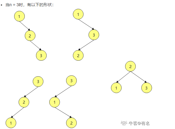 当节点为i的时候,左子树的节点个数为i-1右子树为n-i个节点,知道这个条件就可以使用动态规划来做